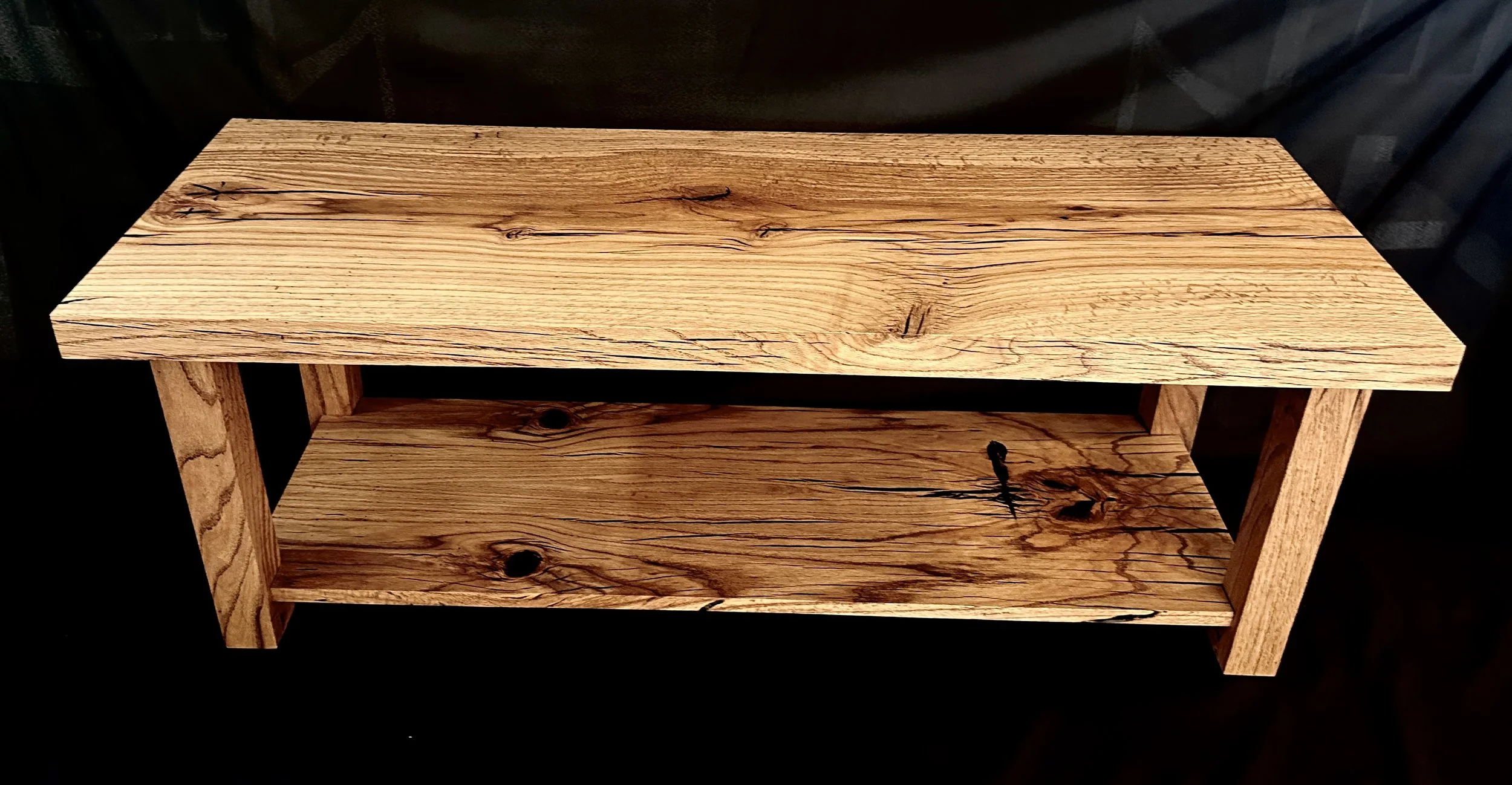 This stout handcrafted oak coffee table blends natural character with modern design will last for generations to come. It was made from a solid oak slab, showcasing distinctive wood grain with natural cracks and voids which have been carefully stabilized and filled with black epoxy, creating striking contrast while preserving the integrity of the wood. The name Époque, meaning “a significant period in time,” speaks to the table’s timeless quality—designed to endure and be passed down through generations.